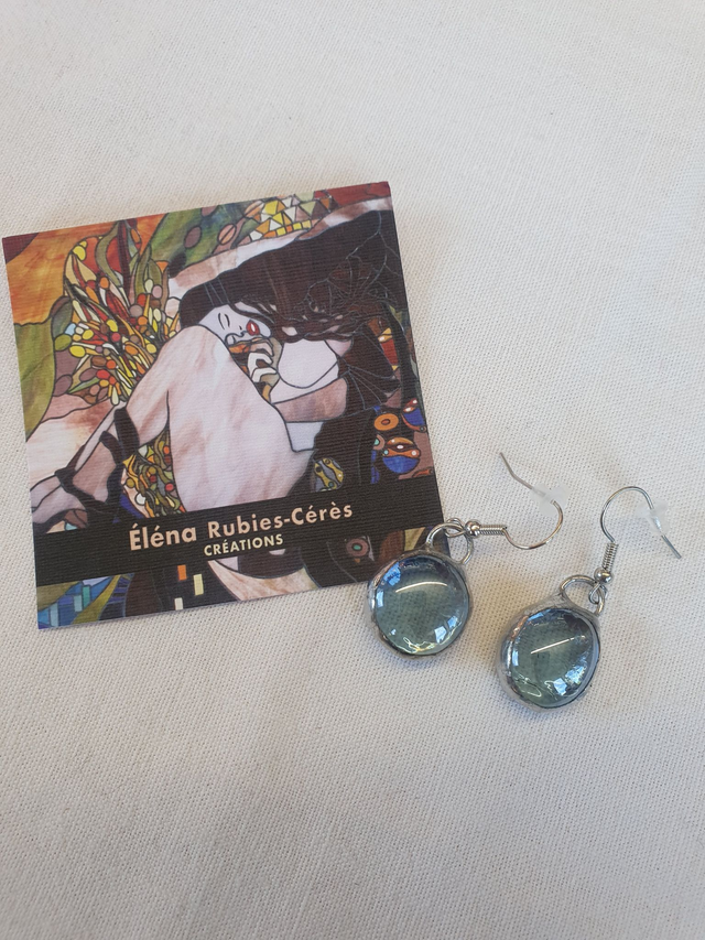 La taille, la forme, l’intensité de la couleur, les incrustations et effet de matières de chaque gemme sont uniques. Avant la fabrication du bijou, elles sont triées, choisies et retravaillées avec soin pour former une paire de boucles d’oreilles harmonieuse et élégante. (ATTENTION : Certaines gemmes utilisées pour ce modèle ne sont plus fabriquées par mes fournisseurs de verre. Il n'y aura donc de réassort que pour une partie des couleurs).