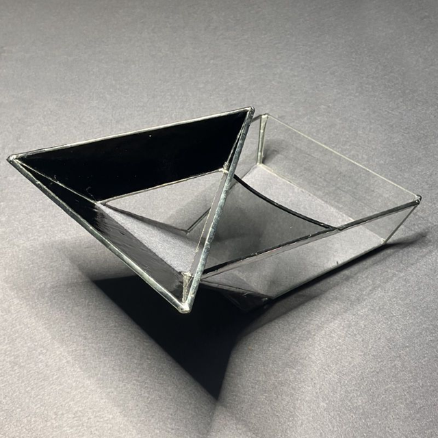 Dimensions : l 15 x L21 x H10 cm environ. Matières : Verres spéciaux pour vitraux, cuivre et étain. Feutrine et velours de fabrication française. Poids (hors colis) : environ 425 g. Une création Eléna Rubies-Cérès - CRÉATIONS.