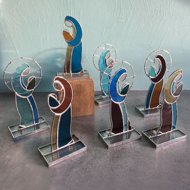 Tranquille et sereine, cette jolie image de la maternité trouvera j'en suis sûre un doux foyer rapidement... J'ai souhaité pour cette série de vitraux des couleurs d'inspiration médiévale et une esthétique à la fois simple et intemporelle.