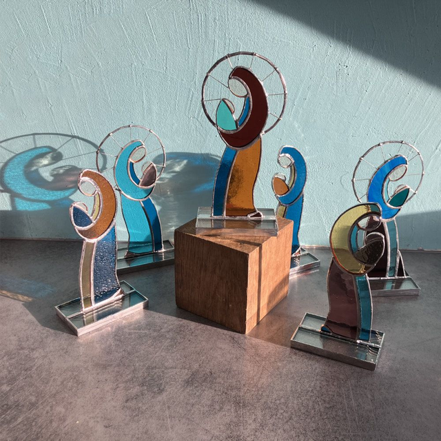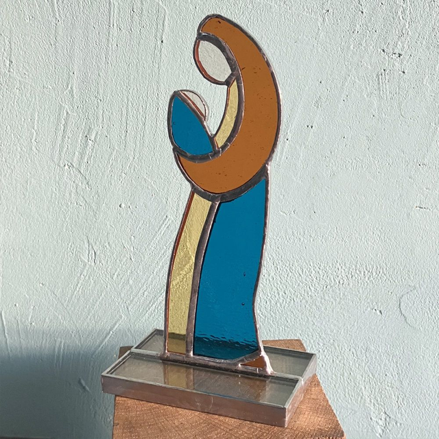 Tranquille et sereine, cette jolie image de la maternité trouvera j'en suis sûre un doux foyer rapidement... J'ai souhaité pour cette série de vitraux des couleurs d'inspiration médiévale et une esthétique à la fois simple et intemporelle.