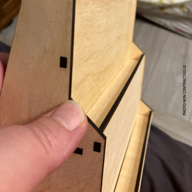 • Contreplaqué de 3 mm en bois clair de bouleau (couleur variable).