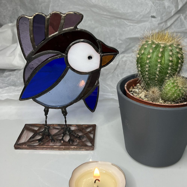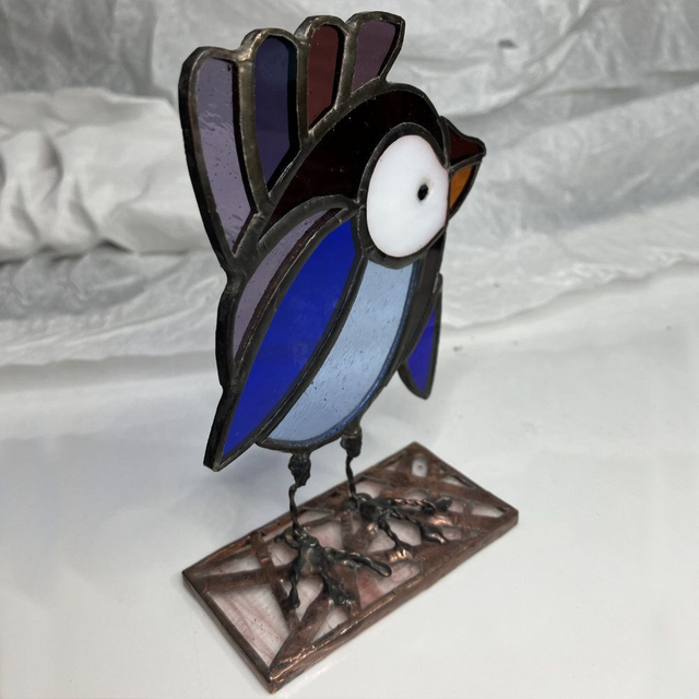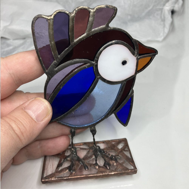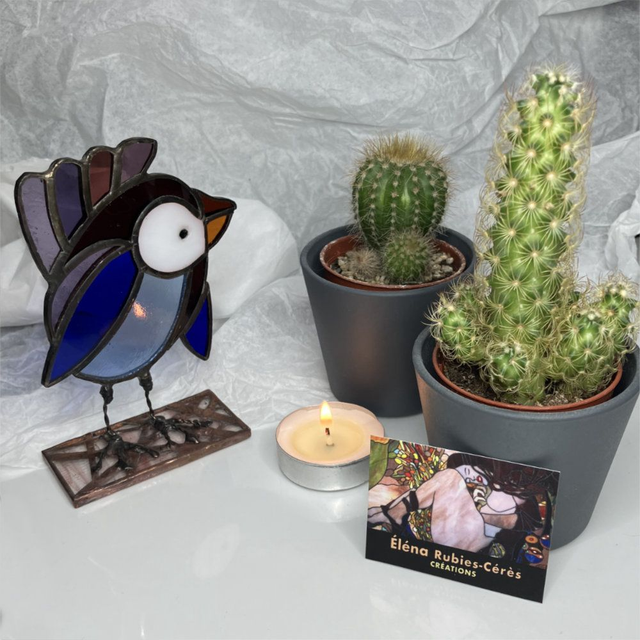 Fabrication main par Éléna Rubies-Cérès-CRÉATIONS. Ces "Zozios" en vitrail (technique Tiffany) sont uniques.